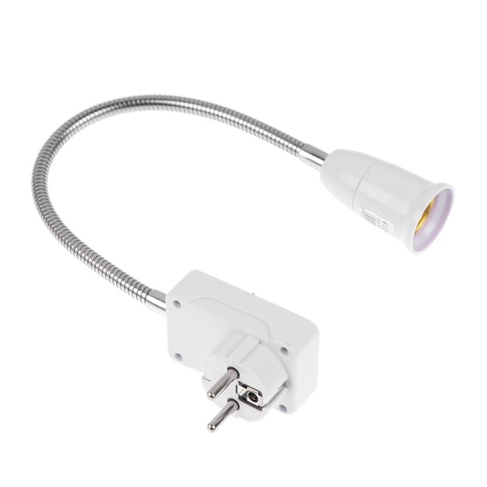 Установите лампу с цоколем E27 в этот переходник, и он заработает как самостоятельный осветительный прибор при подключении к стационарной розетке.