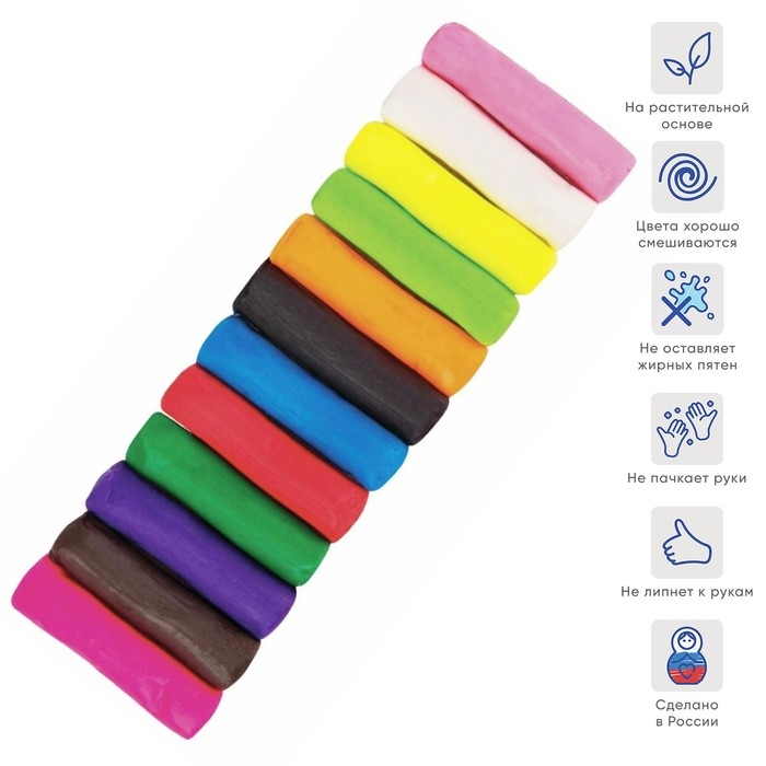 Тесто для лепки 12 цветов, 360 г, "Игротека" отличается яркостью цветов. Они легко смешиваются между собой, образуя насыщенные оттенки. Это делает состав незаменимым при работе с пёстрыми фигурами, развивающими цветовое и абстрактное мышление крохи.