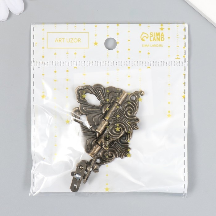 Замок металл для шкатулки бронза + гвозд. набор 5 шт 3,6х2,5 см