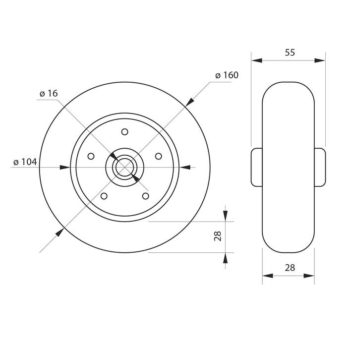 Колесо для транспортных тележек, d=160 мм