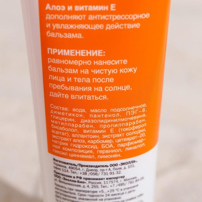 Способ применения: равномерно нанесите бальзам на чистую кожу лица и тела после пребывания на солнце, дайте впитаться.
