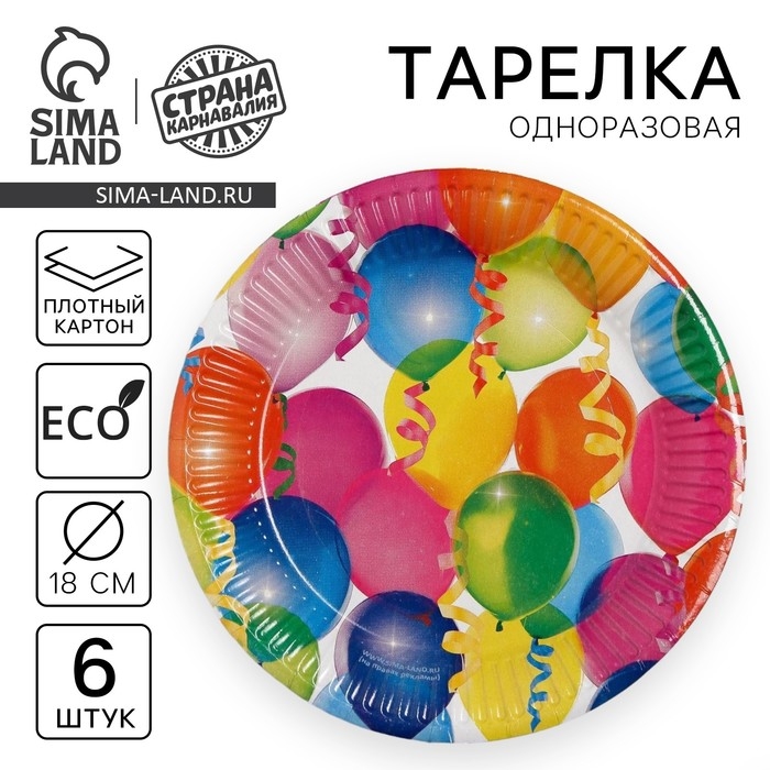 Тарелка одноразовая бумажная "Воздушные шарики" (набор 6 шт) 18 см