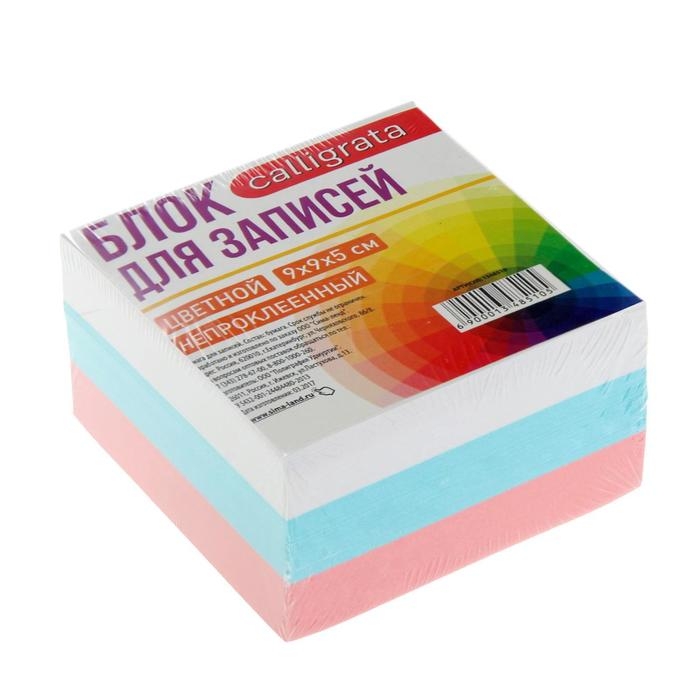 Блок бумаги для записей Calligrata "Триколор", 9x9x5 см, 80 г/м2, непроклеенный, цветной