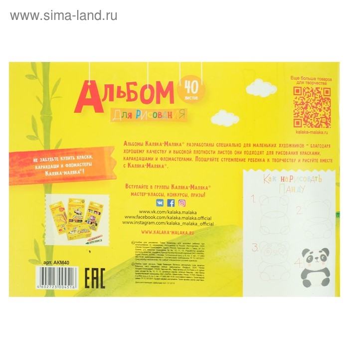 Альбом для рисования А4, 40 листов на скрепке "Каляка-Маляка", 100 г/м2