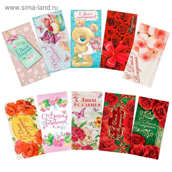 Набор конвертов для денег «С Днём рождения» цветочная фантазия, 10 шт.
