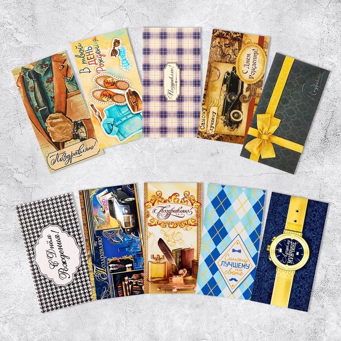 Набор конвертов для денег «Поздравляю» для настоящего мужчины, 10 шт. — отличный вариант для тех, кто не любит тратить время, бегая по магазинам в поисках конвертов.