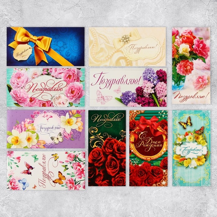 Набор микс конверты для денег «Поздравляю», для прекрасных дам — отличный вариант для тех, кто не любит тратить время, бегая по магазинам в поисках конвертов.