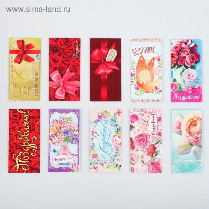 Набор конвертов для денег "Поздравляю" цветочное настроение, 10 шт. — отличный вариант для тех, кто не любит тратить время, бегая по магазинам в поисках конвертов.