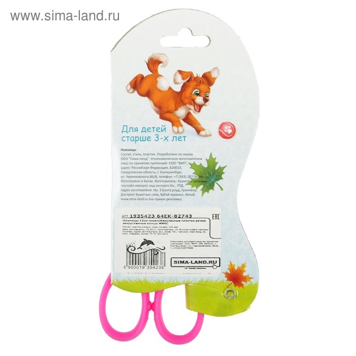 Ножницы 12 см, травмобезопасные пластиковые ручки, закруглённые концы, МИКС