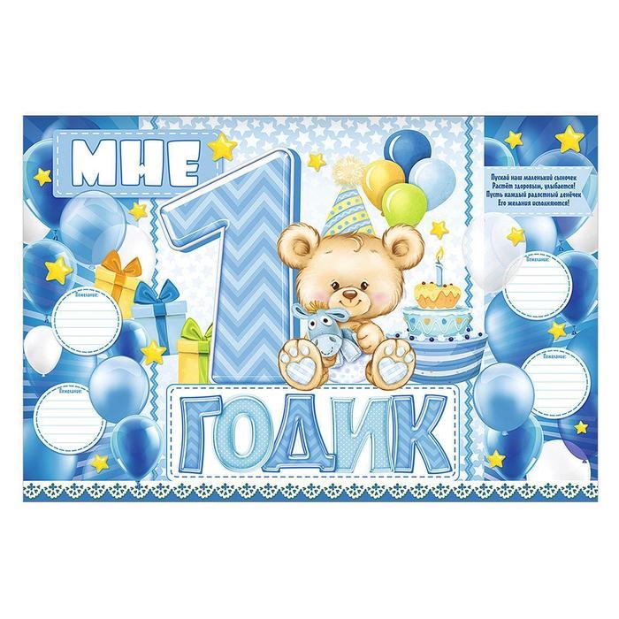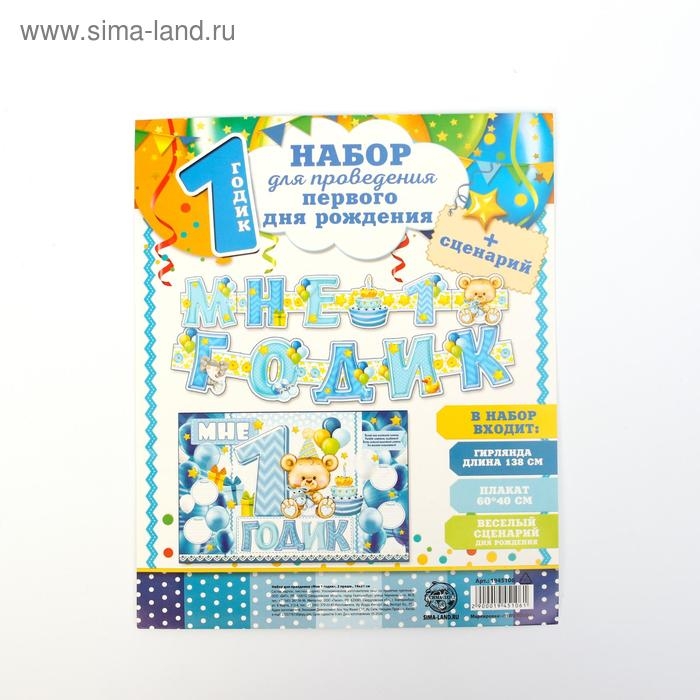 Гирлянда, плакат и сценарий для проведения праздника «Мне 1 годик», 250 г/м²