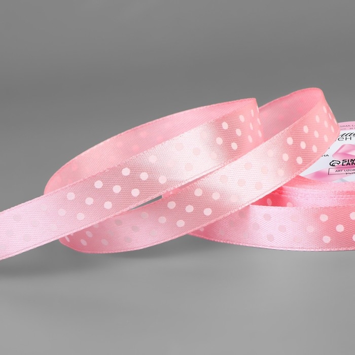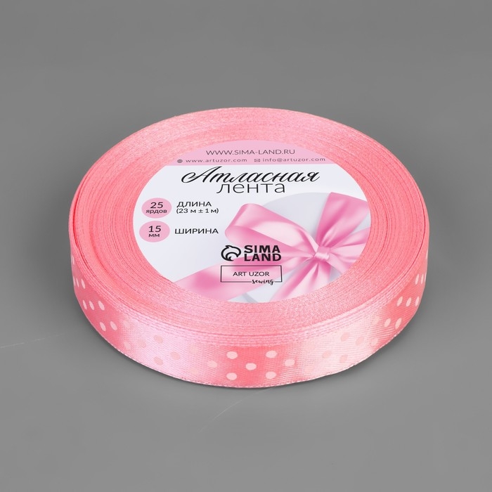 Лента атласная «Горошек», 15 мм × 23 ± 1 м, цвет розовый №004