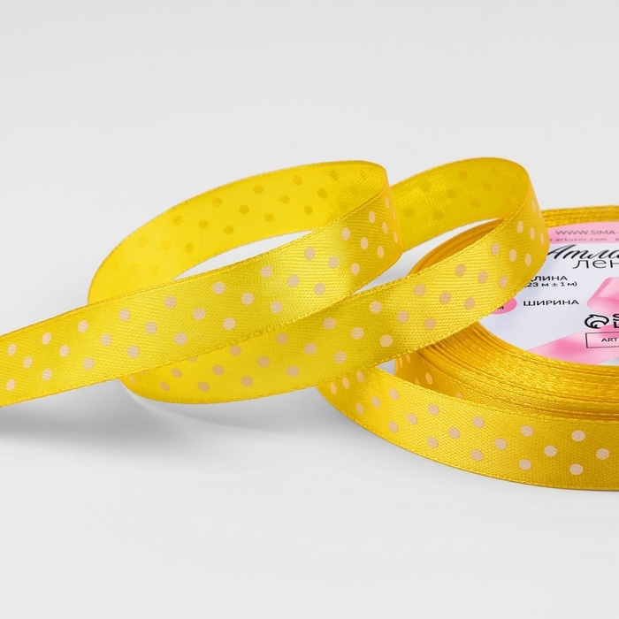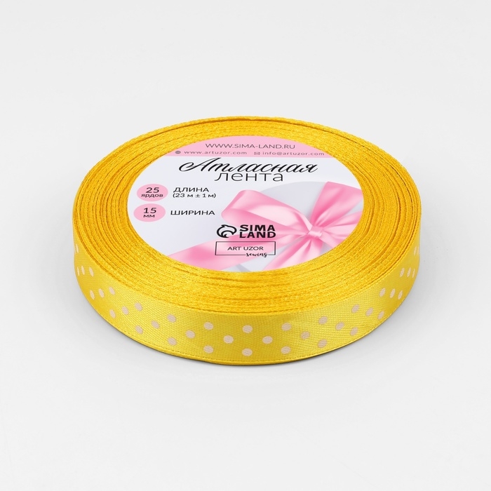 Лента атласная «Горошек», 15 мм × 23 ± 1 м, цвет жёлтый №132