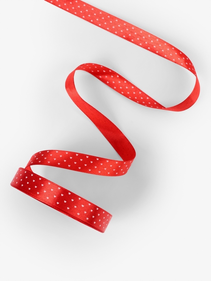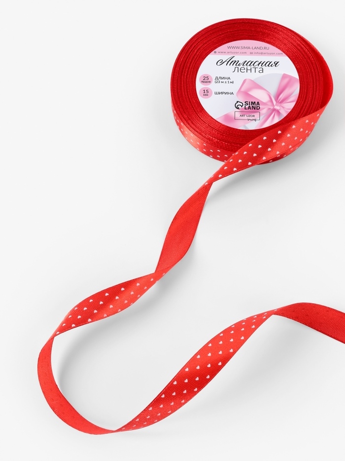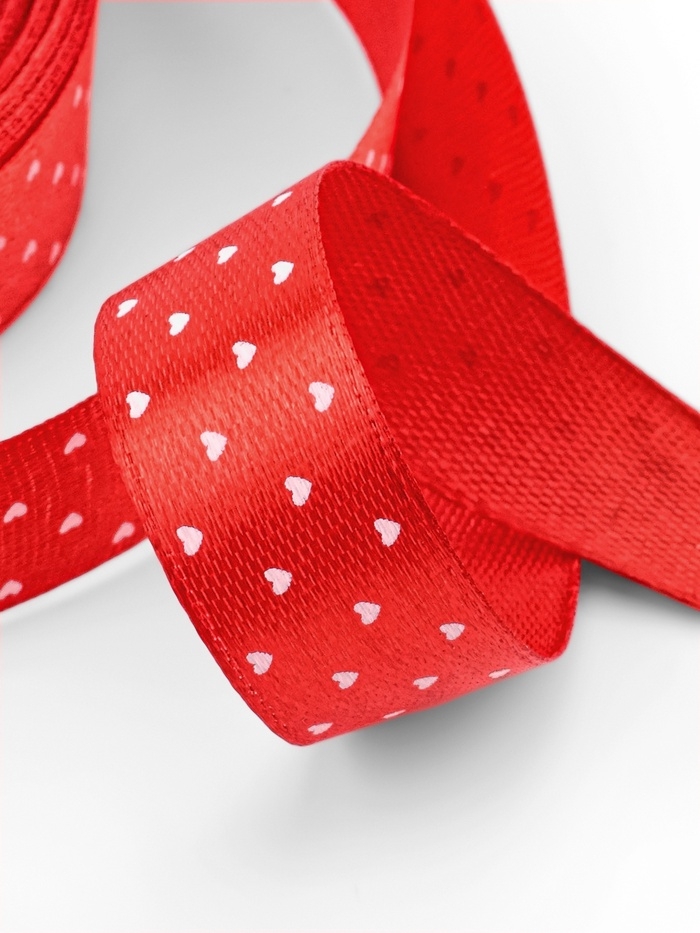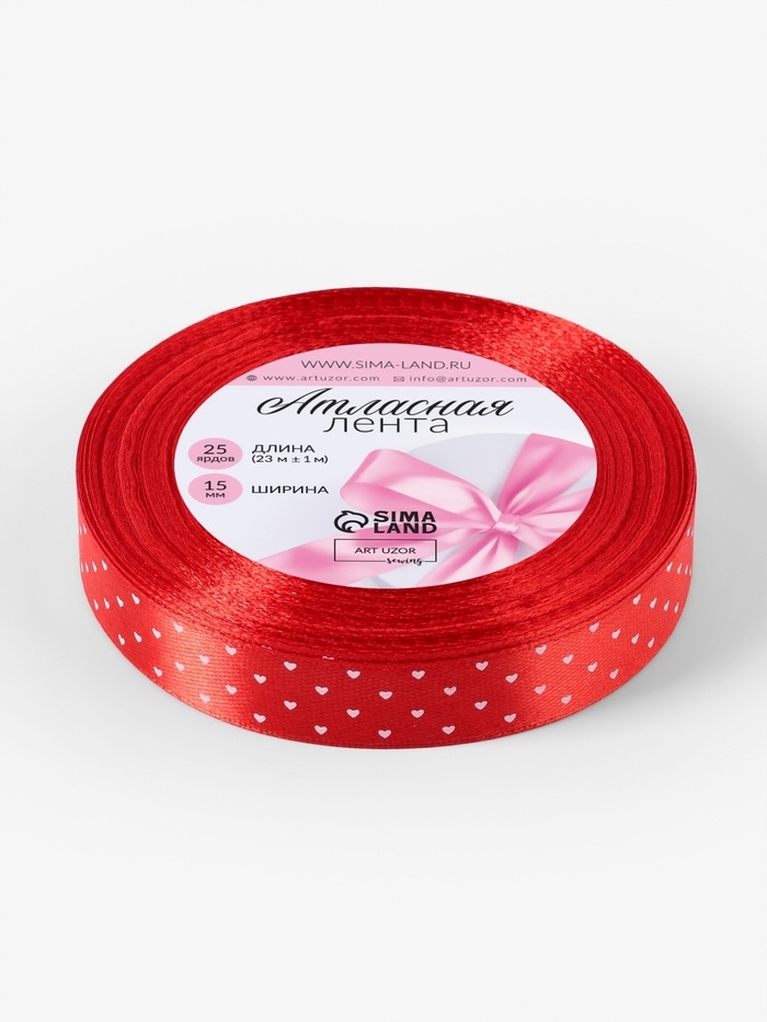 Лента атласная «Сердечки», 15 мм, 23±1 м, красная №026