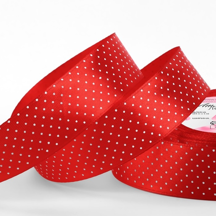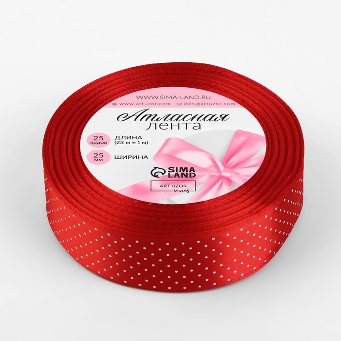 Лента атласная «Горошек», 25 мм × 23 ± 1 м, цвет красный №026