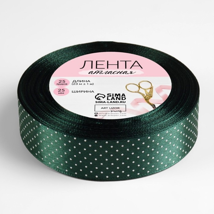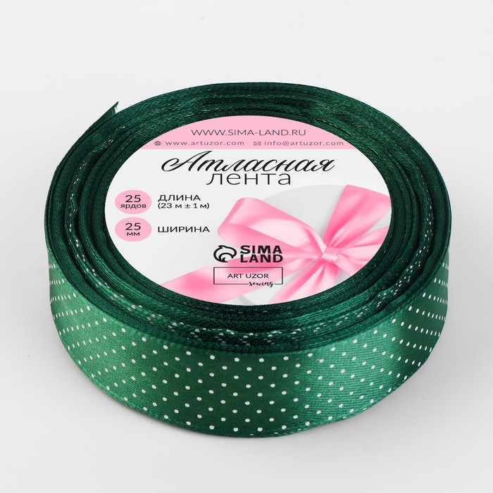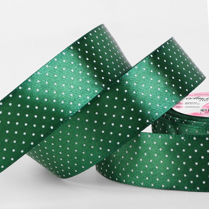 Лента атласная «Горошек», 25 мм × 23 ± 1 м, цвет зелёный №128
