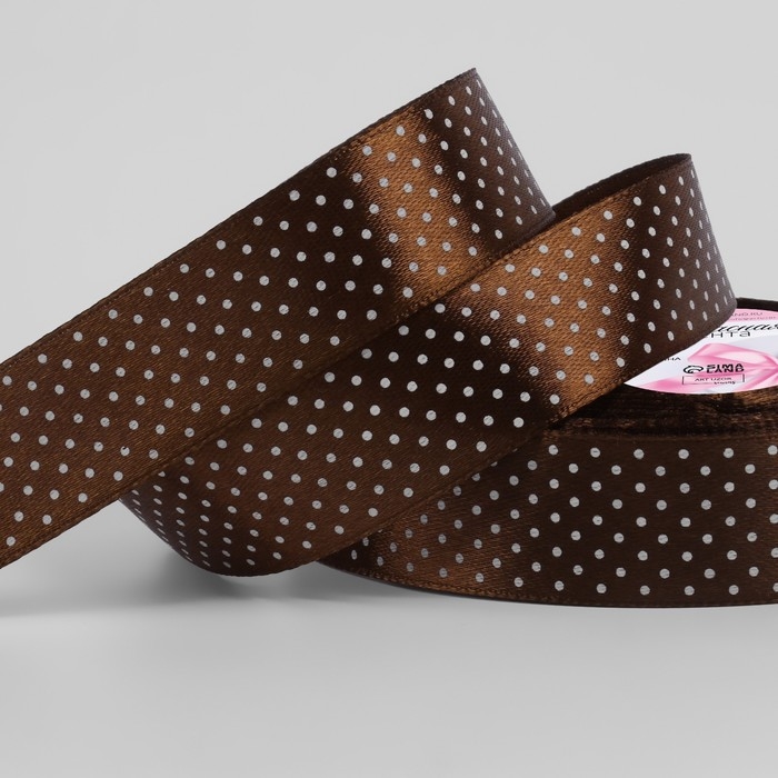 Лента атласная «Горошек», 25 мм × 23 ± 1 м, цвет коричневый №032
