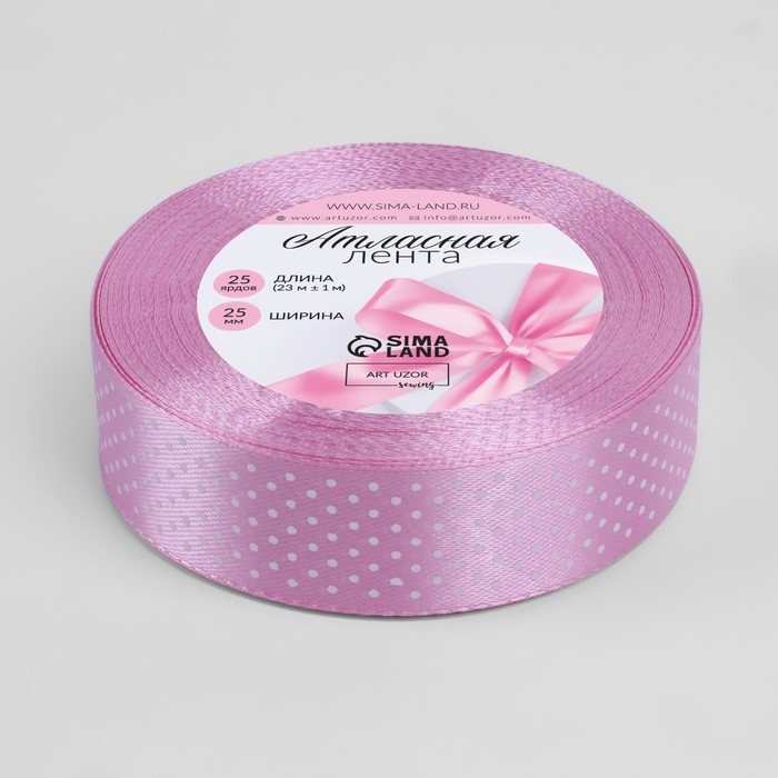 Лента атласная «Горошек», 25 мм × 23 ± 1 м, цвет фиолетовый №045