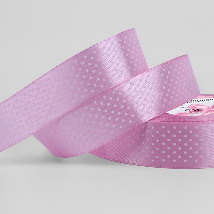 Лента атласная «Горошек», 15 мм, 23±1 м, розовая №004