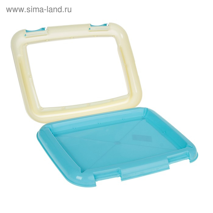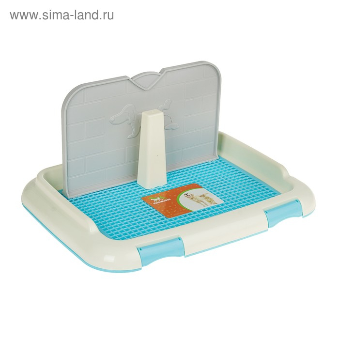 Туалет для собак 46,5 х 35,5 х 5,5 см, со стенкой, съёмной решеткой и столбиком, голубой