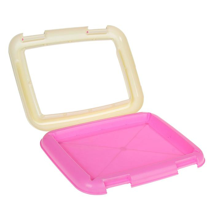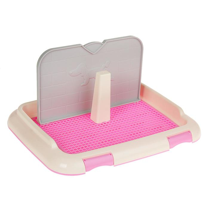 Туалет для собак 46,5 х 35,5 х 5,5 см, со стенкой, съёмной решеткой и столбиком, розовый