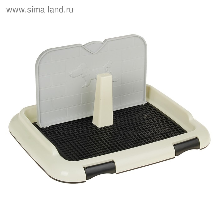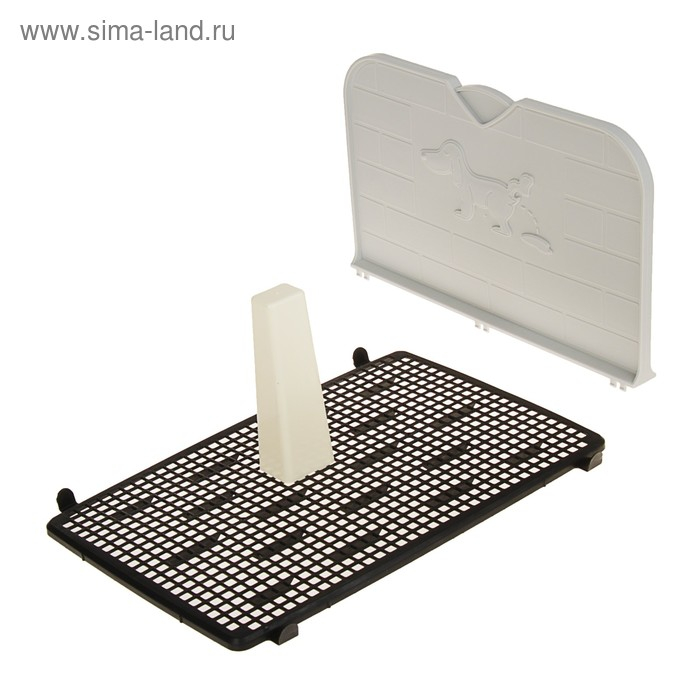 Туалет для собак 46,5 х 35,5 х 5,5 см, со стенкой, съёмной решеткой и столбиком, чёрный