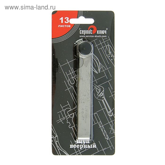 Щуп веерный "СЕРВИС КЛЮЧ", 0,05-1,0 мм, 13 листов, в блистере