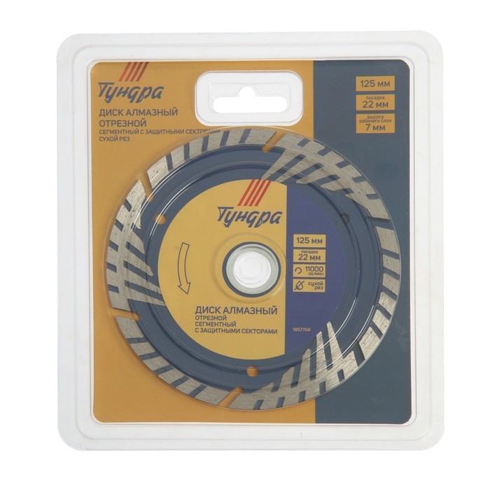 Диск алмазный отрезной ТУНДРА, TURBO-сегмент с защитными секторами, сухой рез, 125×22 мм