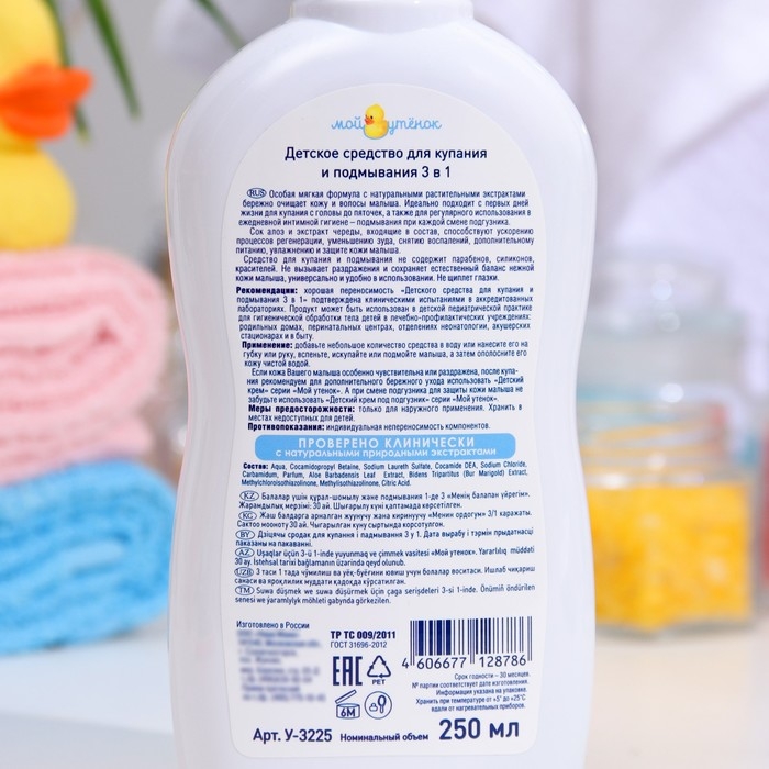 Детское средство для купания и подмывания 3 в 1 "Мой утенок", 250 мл