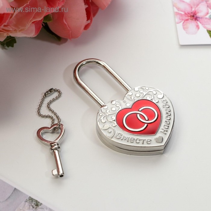Замок для торжественной свадебной традиции - это символ любви. Навесной замок любви на свадьбе становится символом нерушимого союза, заключенного влюбленными в этот день. По традиции замок вешается на мост, загадывается желание о счастливой семейной жизни, а ключи от него выбрасываются в реку, через левое плечо. Это делается для того, чтобы никто никогда не смог открыть этот замок и нарушить клятву, данную влюбленными. Свадебный замок можно повесить на мост по традиции или на дерево в специалных парках или аллеях молодожен, которые есть во многих городах. Замок навесной свадебный имеет в комплекте ключик, замок закрывается и открывается. Традиция закрывать замок на свадьбу объединяет сердца мужа и жены навсегда. Свадебный декоративный замочек будет отлично смотреться на фотосессии и видео.