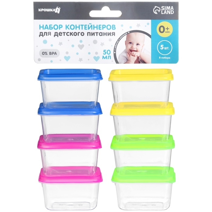Набор контейнеров пищевых с крышками, для хранения детского питания, 8 шт., цвета МИКС