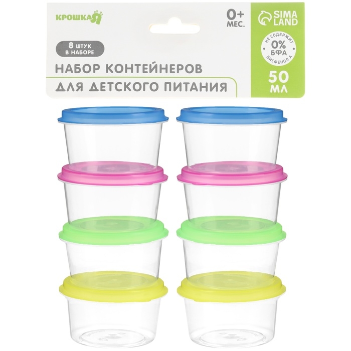 Набор контейнеров для хранения детского питания 8 шт., 50 мл., круглые, с крышками, цвета МИКС
