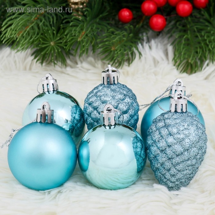 Набор украшений пластик 8 шт "Небесный" (4 шара d-5 см, 4 шишки) голубой