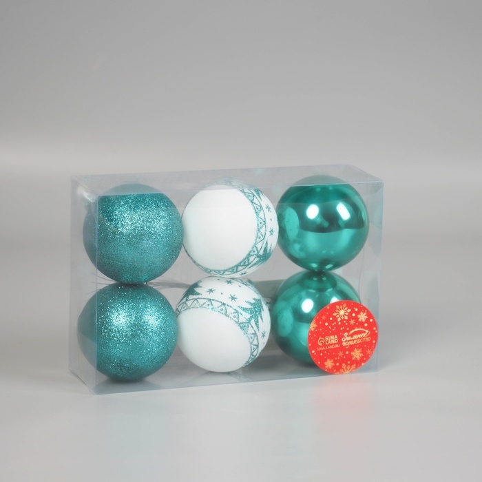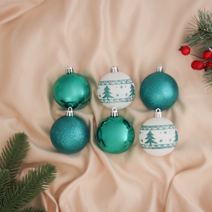 Набор шаров пластик d-6 см, 6 шт "Изумрудик - ёлочка" бело-зелёный