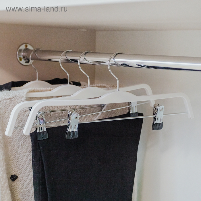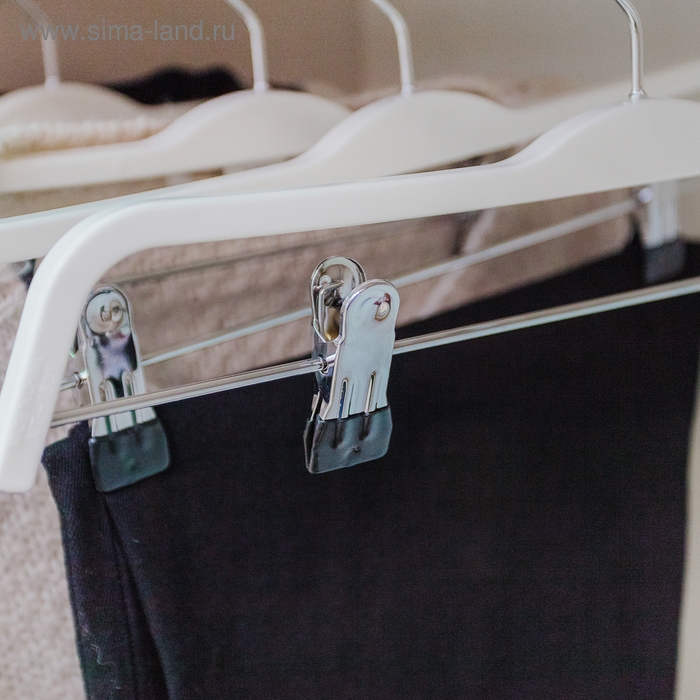 Плечики - вешалка для брюк и юбок Доляна, 37×16 см, широкие плечики, с зажимами, белые