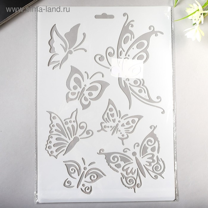 Трафарет пластик "Рой бабочек" 21х31 см