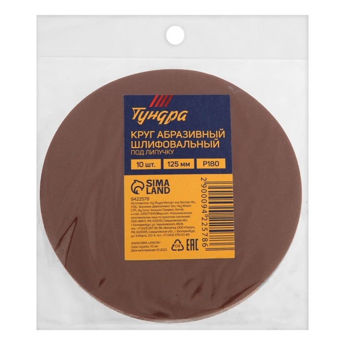 Круг абразивный шлифовальный под "липучку" ТУНДРА, 115 мм, Р120, 10 шт.