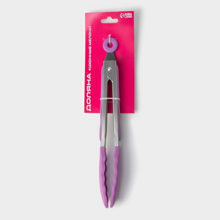 Щипцы кухонные Доляна «Лист», 25×3,5 см, цвет сиреневый