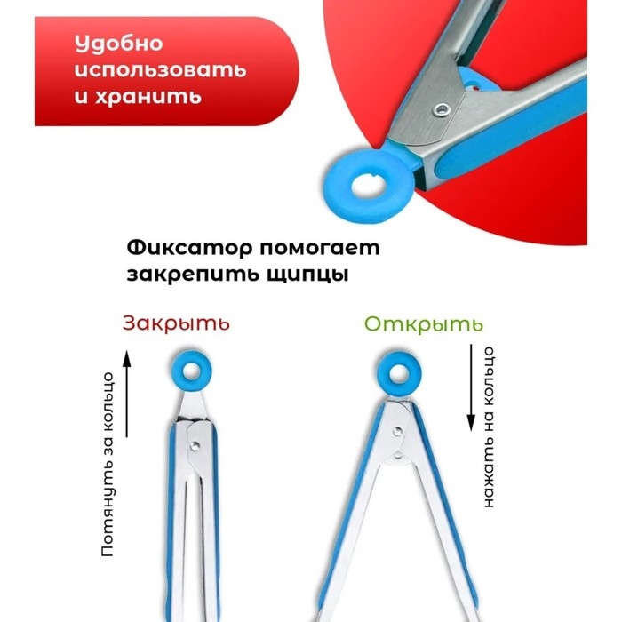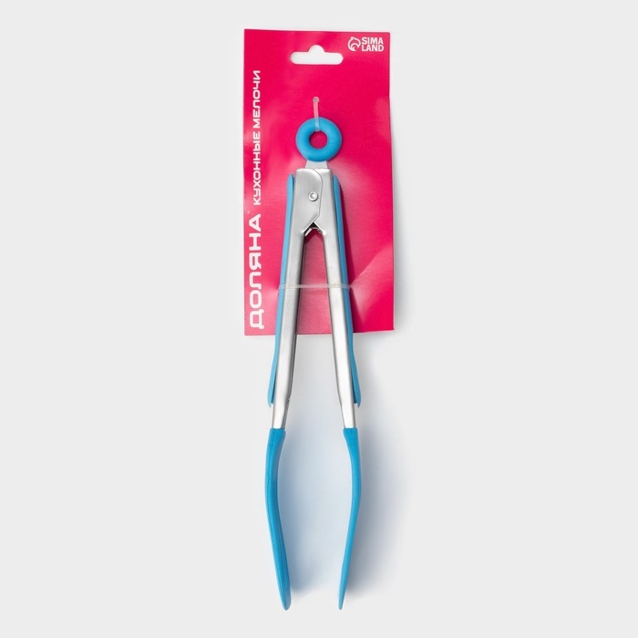 Щипцы кухонные Доляна «Яркость», 201 сталь, 24×4,5 см, цвет красный