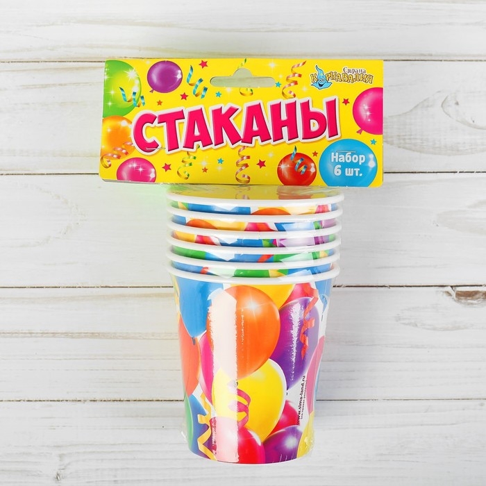 Одноразовая посуда: стакан бумажный «Праздник» воздушные шары, 250 мл, (набор по 6 шт)