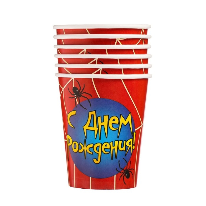 Стакан одноразовый бумажный "С Днем рождения" паутинка, 250 мл. (набор 6 шт)