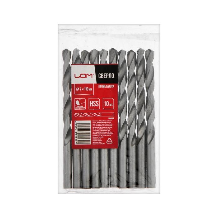 Сверло по металлу ЛОМ, HSS, цилиндрический хвостовик, 7 х 110 мм, 10 шт.