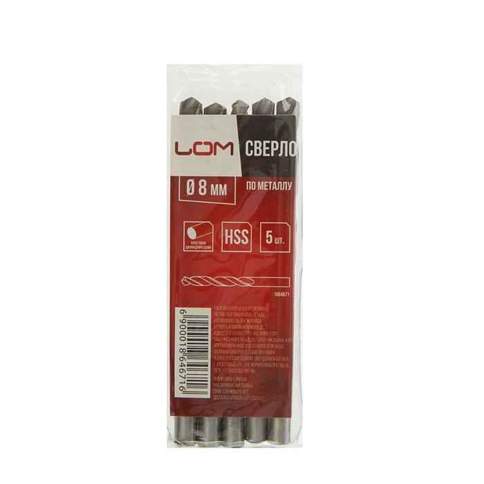 Сверло по металлу ЛОМ, HSS, цилиндрический хвостовик, 8×115 мм, 5 шт.