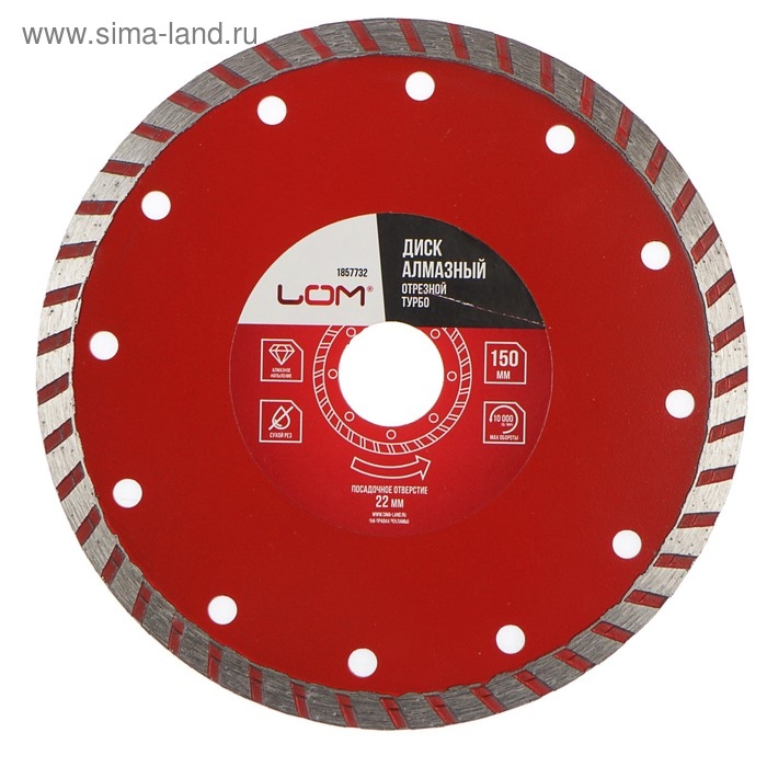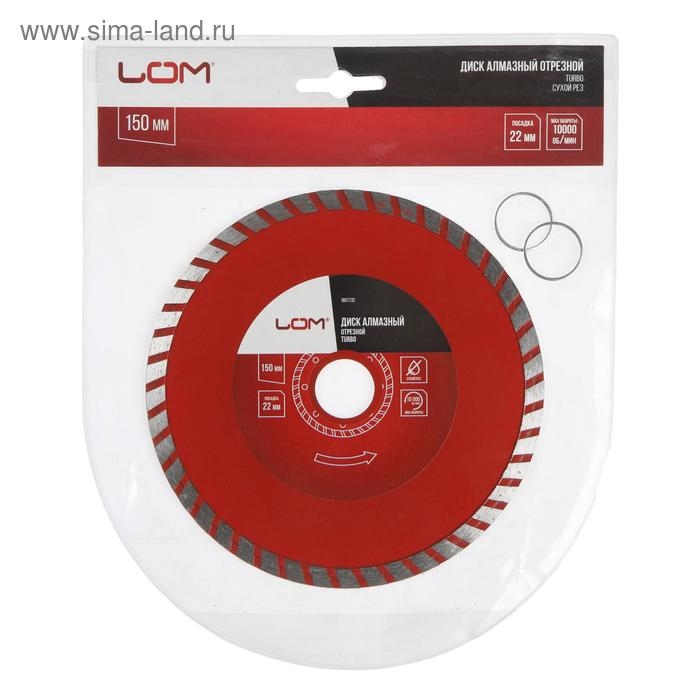 Диск алмазный отрезной ЛОМ, TURBO, сухой рез, 150 х 22 мм