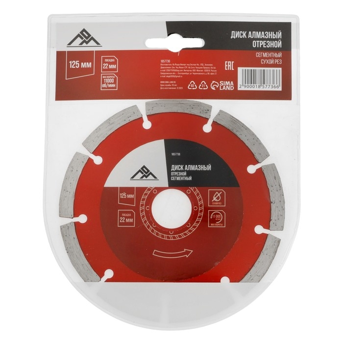 Диск алмазный отрезной ЛОМ, сегментный, сухой рез, 125 х 22 мм