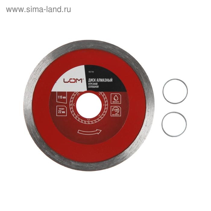 Диск алмазный отрезной ЛОМ, сплошной, мокрый рез, 115 х 22 мм