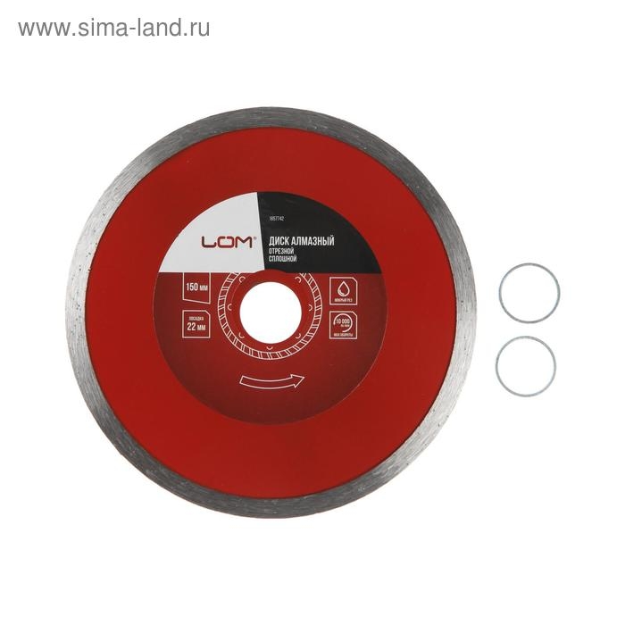 Диск алмазный отрезной ЛОМ, сплошной, мокрый рез, 150 х 22 мм
