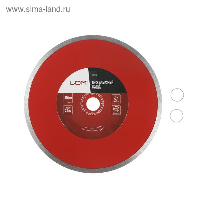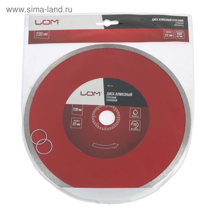 Диск алмазный отрезной ЛОМ, сплошной, мокрый рез, 230 х 22 мм
