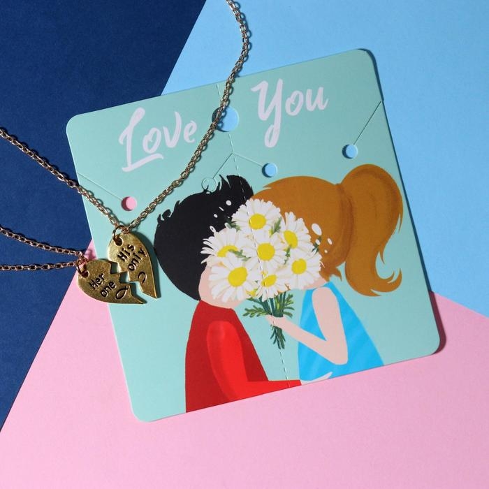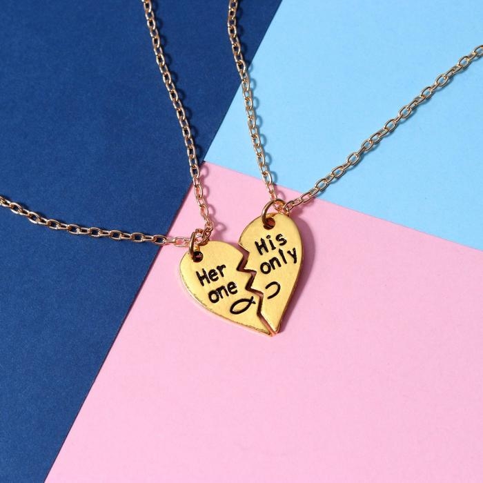 Кулоны «Неразлучники» для него и неё, цвет чернёное золото, 40 см