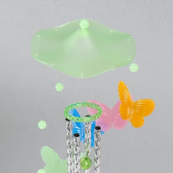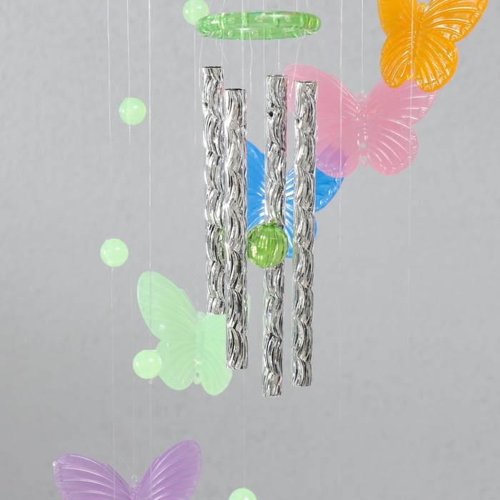 Музыка ветра пластик "Бабочки" светятся в темноте 4 трубочки + 11 фигурок 67 см МИКС