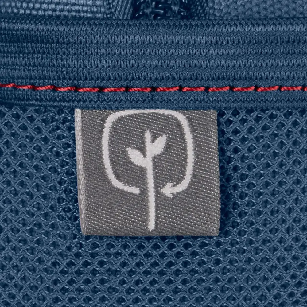 Изготовлен из 100% переработанного материала — на один рюкзак уходит в среднем 12 ПЭТ-бутылок.